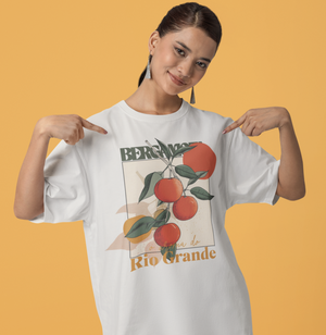 A bergamota é um dos símbolos mais queridos do Rio Grande do Sul. Presente nas rodas de chimarrão, nas conversas de inverno e na memória afetiva dos gaúchos, ela representa simplicidade, aconchego e tradição, sendo muito mais que uma fruta: é parte da identidade cultural do Rio Grande. // Camiseta com modelagem oversized em tecido premium 100% algodão, gola canelada e estampa em Silk HD. //
