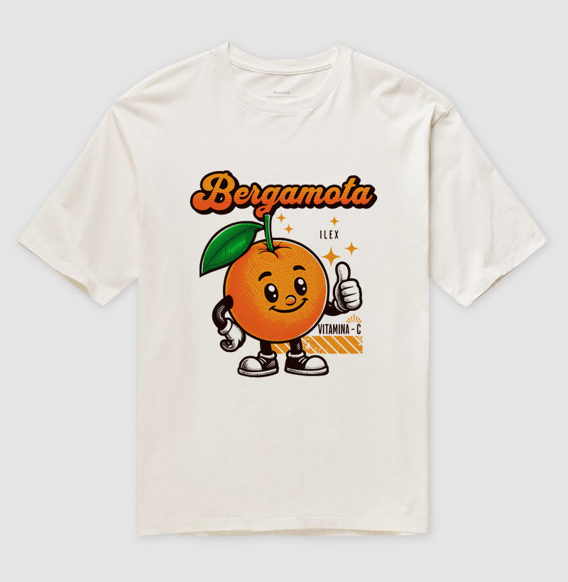 Camiseta com estampa vintage destacando uma bergamota, a fruta mais querida do Rio Grande do Sul! Com um visual retrô e cheio de personalidade, a arte celebra esse clássico símbolo gaúcho — doce, cítrica, refrescante e carregada de vitamina C. Um tributo divertido à fruta que marca os invernos e aquece as rodas de chimarrão. // Camiseta com modelagem oversized em tecido premium 100% algodão, gola canelada e estampa em Silk HD. //