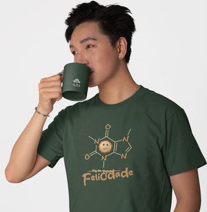 Quando perguntarem se existe uma fórmula para a felicidade, a resposta é SIM! A fórmula molecular da cafeína, é claro. Quem não gosta de café, bom sujeito não é. // Camiseta com modelagem regular em tecido premium 100% algodão e estampa em Silk HD. \\ moda genderless.