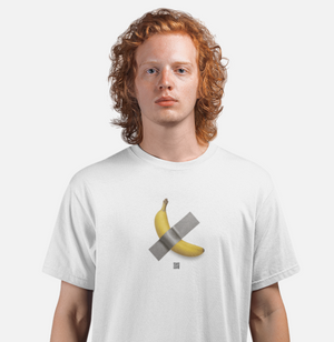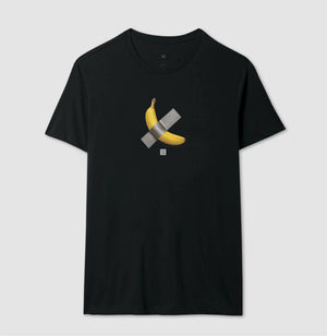 Inspirada na obra Comedian, do artista italiano Maurizio Cattelan. O objetivo do artista ao criar a obra foi criticar o conceito de arte e provocar pensamentos sobre o assunto. // Camiseta com modelagem regular em tecido premium 100% algodão e estampa em Silk HD. \\ moda genderless.