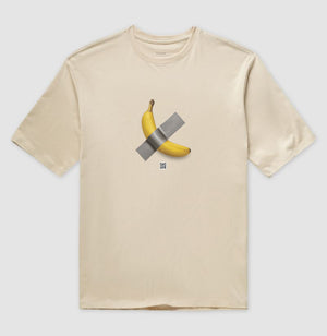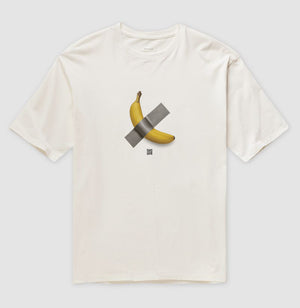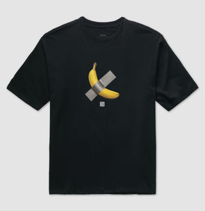 Inspirada na obra Comedian, do artista italiano Maurizio Cattelan. O objetivo do artista ao criar a obra foi criticar o conceito de arte e provocar pensamentos sobre o assunto. // Camiseta com modelagem oversized, em tecido premium 100% algodão e estampa em Silk HD. \\ moda genderless.