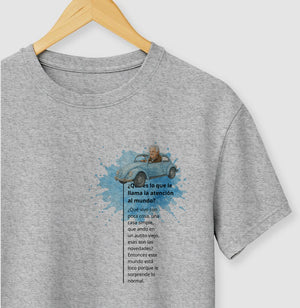 Em 2014, em entrevista à BBC, Pepe Mujica questiona o fato de o mundo se surpreender com um presidente viver de forma simples, possuir um carro antigo e ter poucas coisas na vida, afinal esta é a realidade do povo. Conclui dizendo "Então este mundo está louco, porque se surpreende com o normal." // Camiseta com modelagem regular confeccionada em tecido premium 100% algodão e estampa em Silk HD. \\