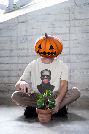 Entre as décadas de 1950 e 1980 mascar chiclete era um ato de rebeldia, por isso diversos personagens "bad ass" eram retratados naquela época mascando chiclete. Nesta coleção apresentados os icônicos personagens Monstros da Universal mascando a famosa goma de tutti frutti. // Camiseta com modelagem oversized, em tecido premium 100% algodão, gola canelada e estampa em Silk HD. \\ moda genderless.