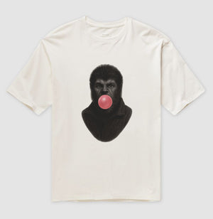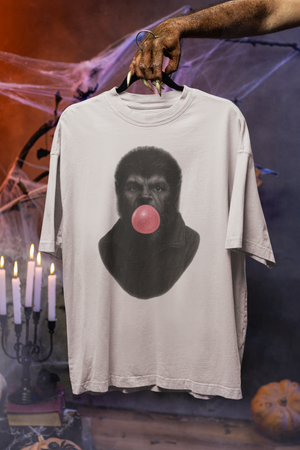 Entre as décadas de 1950 e 1980 mascar chiclete era um ato de rebeldia, por isso diversos personagens "bad ass" eram retratados naquela época mascando chiclete. Nesta coleção apresentados os icônicos personagens Monstros da Universal mascando a famosa goma de tutti frutti. // Camiseta com modelagem oversized, em tecido premium 100% algodão, gola canelada e estampa em Silk HD. \\ moda genderless.