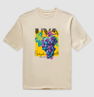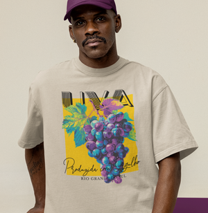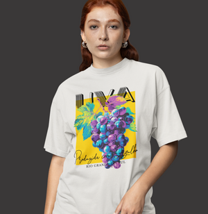 A uva é símbolo de tradição e prosperidade no Rio Grande do Sul. Cultivada desde a chegada dos imigrantes italianos, ela se tornou parte da identidade cultural gaúcha, impulsionando a economia, o turismo e a produção de vinhos e sucos reconhecidos no Brasil e no mundo. Mais que um fruto, a uva representa história, celebração e o espírito acolhedor do povo gaúcho. // Camiseta com modelagem oversized em tecido premium 100% algodão, gola canelada e estampa em Silk HD. //