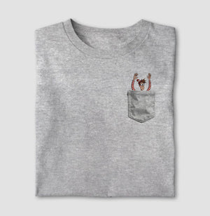 Ícone da Cultura Pop que conquistou o coração de crianças e adolescentes no fim do século XX, o homem de camisa listrada se tornou um marco na história dos quebra-cabeças e da literatura imagética. Esse carinha recebeu diversos nomes pelo mundo: Wally, Uoli, Wolli, Walter, Charlie, Wori, Wei Lì, Holger, Willy, Valli, Waldo, Vallu, Ali, Ubaldo, Efi. Qual o seu preferido? //OBS: a camiseta não possui bolso, ele faz parte da estampa. //