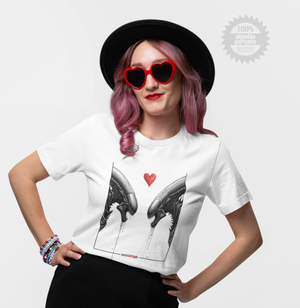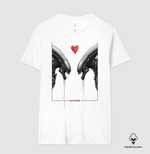 Os Aliens também amam. // Camiseta premium confeccionada em algodão pima. Reconhecido mundialmente por sua maciez incomparável, resistência e toque suave, o algodão peruano oferece conforto e qualidade superiores. Produzido com fibras longas e finas, garante durabilidade e elegância natural em cada peça. // moda genderless.